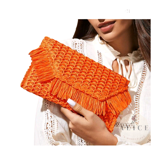 SaleOrange straw clutch