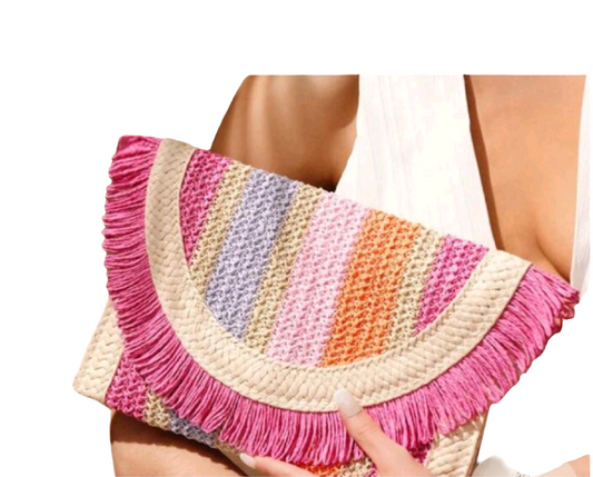Striped pink straw clutch